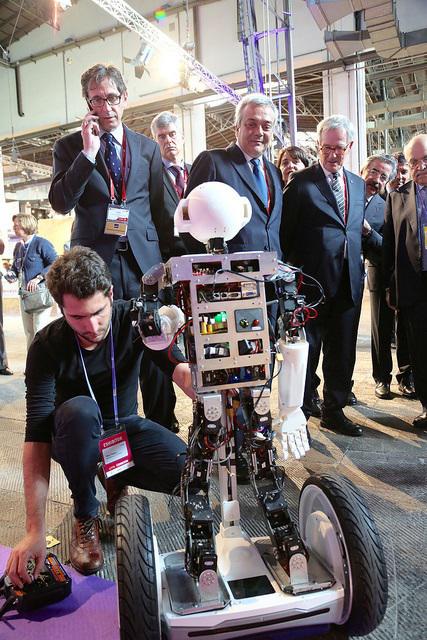 Robosavvy是英國一家著名機器人開發(fā)公司和3D打印技術經(jīng)銷商,擁有極為豐富的制造機器人的經(jīng)驗。他們主要研究工程、品牌推廣、現(xiàn)場活動、電視和廣告制造等定制機器人,很明顯,在定制化方面,沒有比3D打印更適合的技術了。此次在巴塞羅那舉辦的4 Years From Now (4YFN)會場上,Robosavvy公司發(fā)布的同名機器人Robosavvy可以穩(wěn)穩(wěn)地駕駛電子平衡車賽格威。并可使用虛擬現(xiàn)實頭盔Oculus Rift進行遙控操作,堪稱完美的遠程呈現(xiàn)機器人。