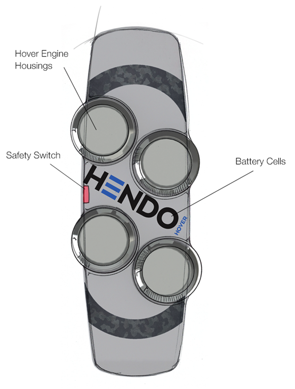 滑板可漂浮于鋁或銅等導(dǎo)電材質(zhì)的U型滑道,主要基于“磁場(chǎng)架構(gòu)”(Magnetic Field Architecture)技術(shù),而動(dòng)力由滑板底部的4個(gè)圓形具磁性的引擎提供。