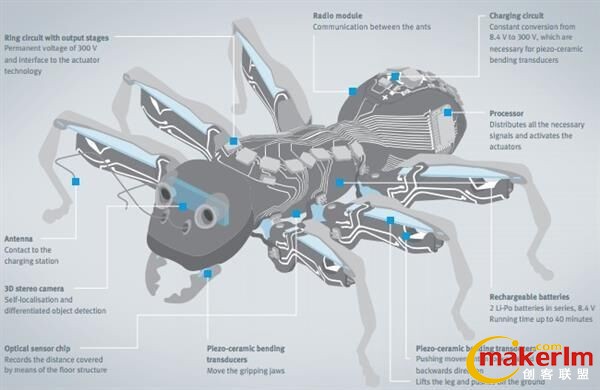 這隊螞蟻共有3只,每只長達13.5厘米,大概相當于成年人手掌大小。它們通過一個由攝像頭和傳感器組成的系統(tǒng)確定位置和所述對象外形大小,并使用安裝在下巴的一組抓手抓住對象。盡管這些螞蟻無法獨立完成某些事,但通過無線網(wǎng)絡(luò),它們能近乎完美地合作完成一些任務(wù)。